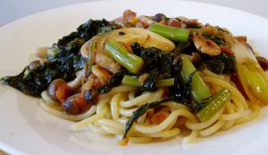 野沢菜と葱のトマト醤油