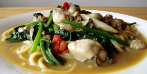 牡蠣と白井産の野菜(ほうれん草・ネギ)